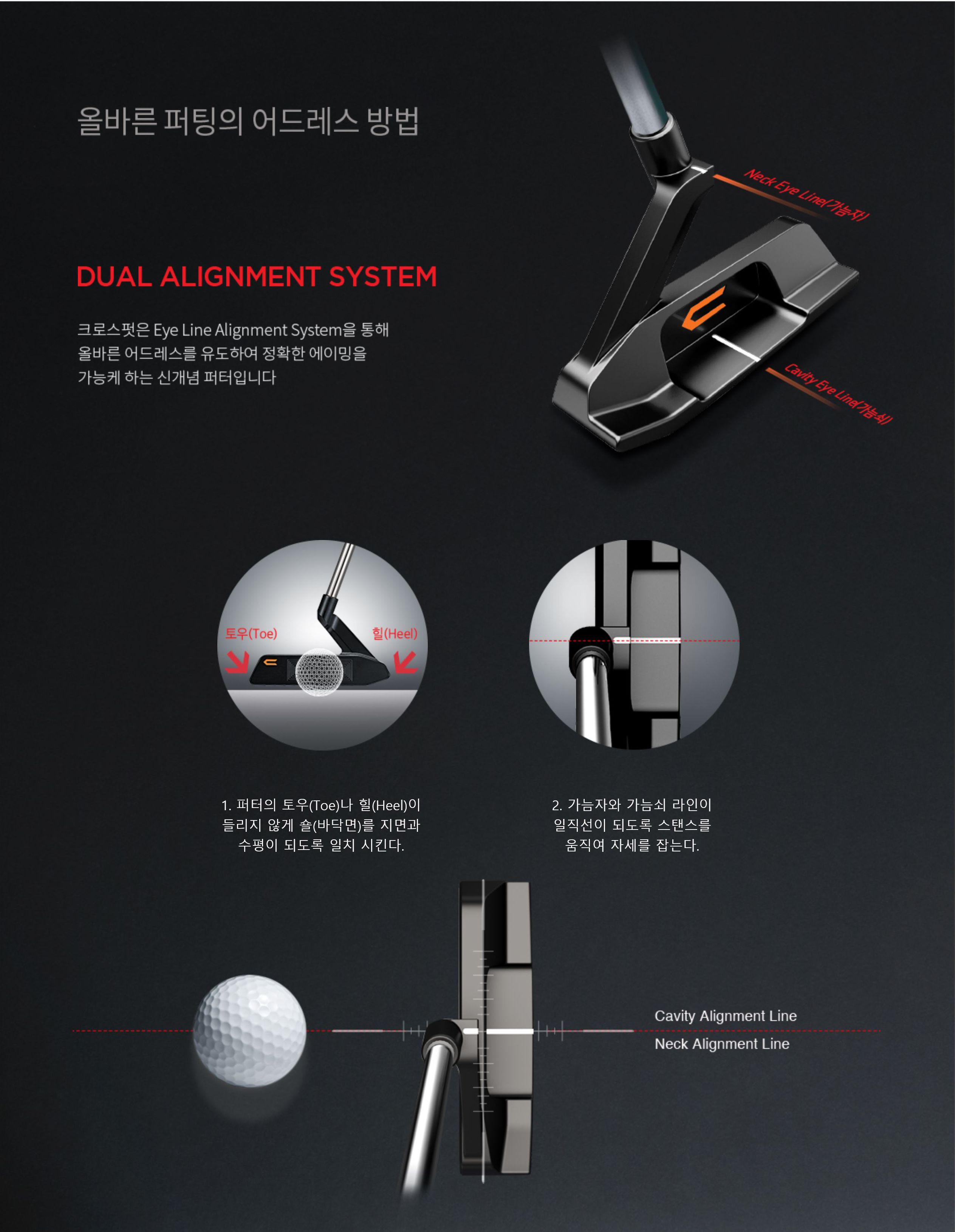 * CROSSPUTT 퍼터는 디자인적 요소로 블랙컬러의 Identity를 가지고 있으며 도장 특성상 사용시 취급법에 따라 마모가 발생할수있으며, 색상으로 인해 마모나 스크러치 발생시 타사 제품보다 조금 더 부각될 수 있고, 헤드 교체를 원할시 유상A/S가 가능합니다.